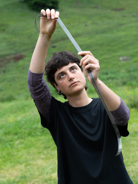 Esth Fantuzzi (1996, Italy) is an artist based in Brussels working with performance, analogue cinema, and writing. Their artistic research focuses on memory, voice, and the dialogue between past and present, navigating the boundaries between the visible and invisible. They develop performative work and lead collaborative 16mm film workshops exploring storytelling and collective memory.