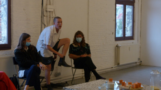 Francesca Hawker is an artist living in Brussels. She works with performance, poetry, sound and text, each of these components flowing playfully into the other. During her residency she will explore what is at stake for queer and feminist practices of fantasy and play in the face of the neoliberal drive for productivity. Through performance and through the lens of comedy and slapstick, she will investigate what language can do when unhampered by the need to be useful.