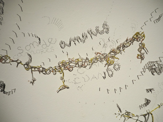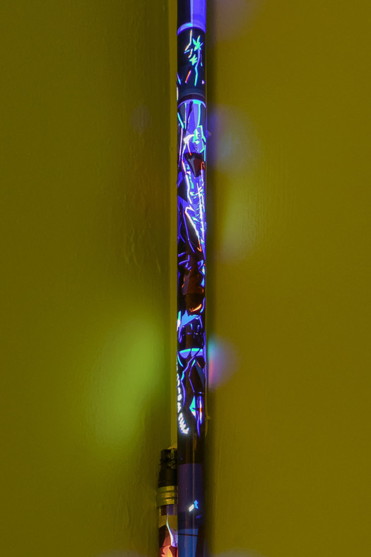 What if Charlie Chaplin, in Modern Times, picked up one of the nuts he’s tightening on the assembly line and began to draw a tiny landscape on it? He would focus on placing every detail, denying the productive rhythm of the factory. Through tangles, cuts, and overlaps, he would transform the nut, making it look like a piece of jewellery. This act of escapism resonates in the work of Leire Lacunza Miranda (1996, Basque Country), who uses a scalpel, screws, or plastic beads to cover LED tubes, windows, and ceilings. In doing so, she questions the despotic aesthetic gaze that dictates what to look at and what not to.