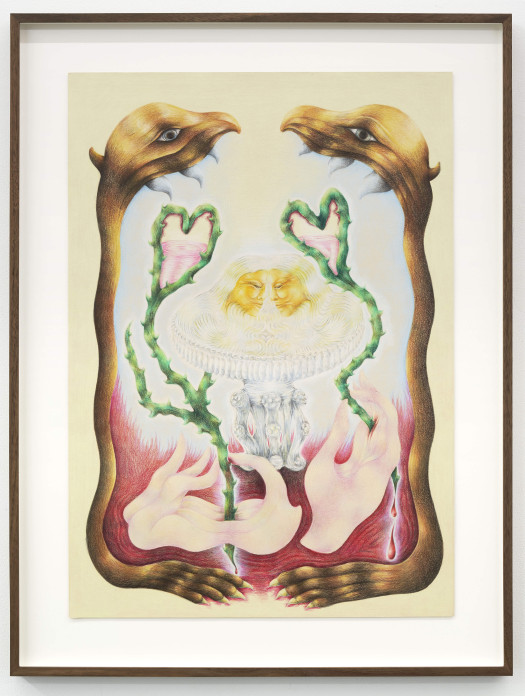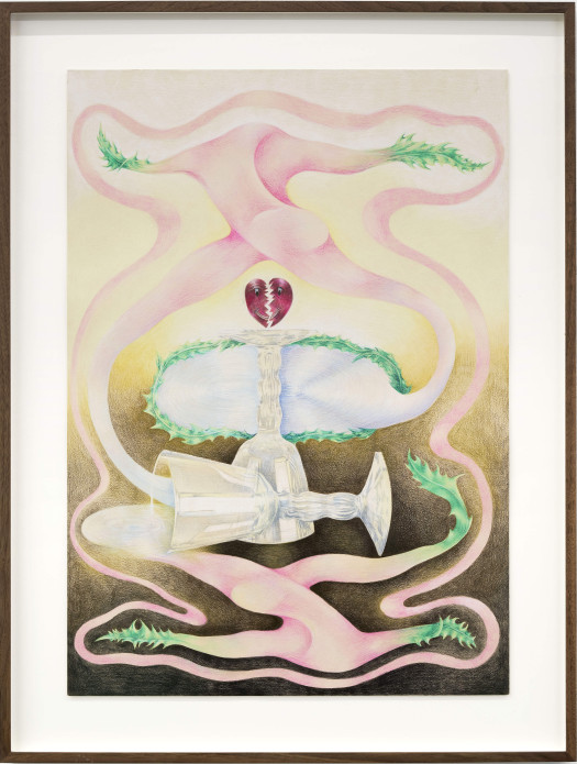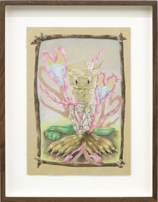 Noa Verkeyn (1997, Belgium) graduated from KASK, Ghent in 2021 with a series of poppy flower drawings. By humanizing these flowers, they serve to observe the relationship between the self, others, and nature. Over the last few years, her work started to incorporate new symbols such as hearts, crystal glasses, and thorn stems, exploring worlds where mysticism has to be created anew.