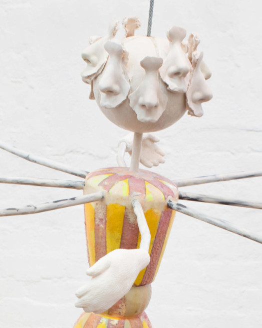 Zoë Field is an artist based in Berlin. Her practice examines human relationships to labour, identity construction and social belonging, while contemplating the place of the individual in a consumer landscape. Working with steel, ceramic, textiles, and photography, her sculptures refer to ‘architectural antagonists’ and specific typologies in fashion and costume. From these sources she develops character-like subjects which insinuate forms of social performance. Field’s recent works evoke the cartoon-body, the building-as-body, and the female consumer, undergoing the psychic and physical effects of hyper-activity.