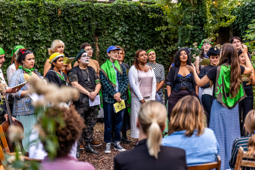 Queer Choir Amsterdam is een artistiek ensemble dat uitgaat van de creatie van een moedige ruimte om unieke identiteiten en stemmen te vieren. Door middel van repetities en optredens geven ze uitdrukking aan ideeën over de toekomst die ze wensen en verhalen die ze willen delen.