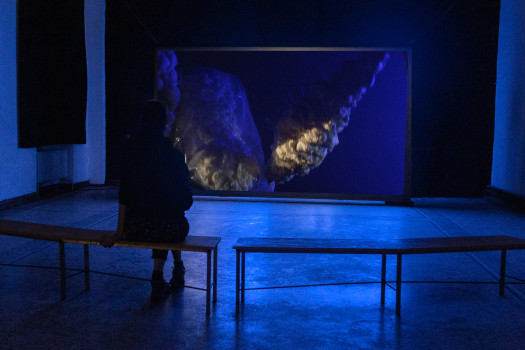 Cleo Fariselli presenteert een nieuwe video-installatie geïnspireerd door de fantastische verbeelding van noodtoestanden. Your Storm Our Dew brengt een eigen wereld tot leven, een verontrustende omgeving waar mysterieuze wezens lijken te zweven op een donkere achtergrond. Overlevingsmechanismen krijgen lichamen en vertegenwoordigen het collectief onbewuste en onze angsten. Het oog van de camera observeert deze mysterieuze levensvormen alsof het de eerste documentaire registratie is van een buitenaards ecosysteem.
